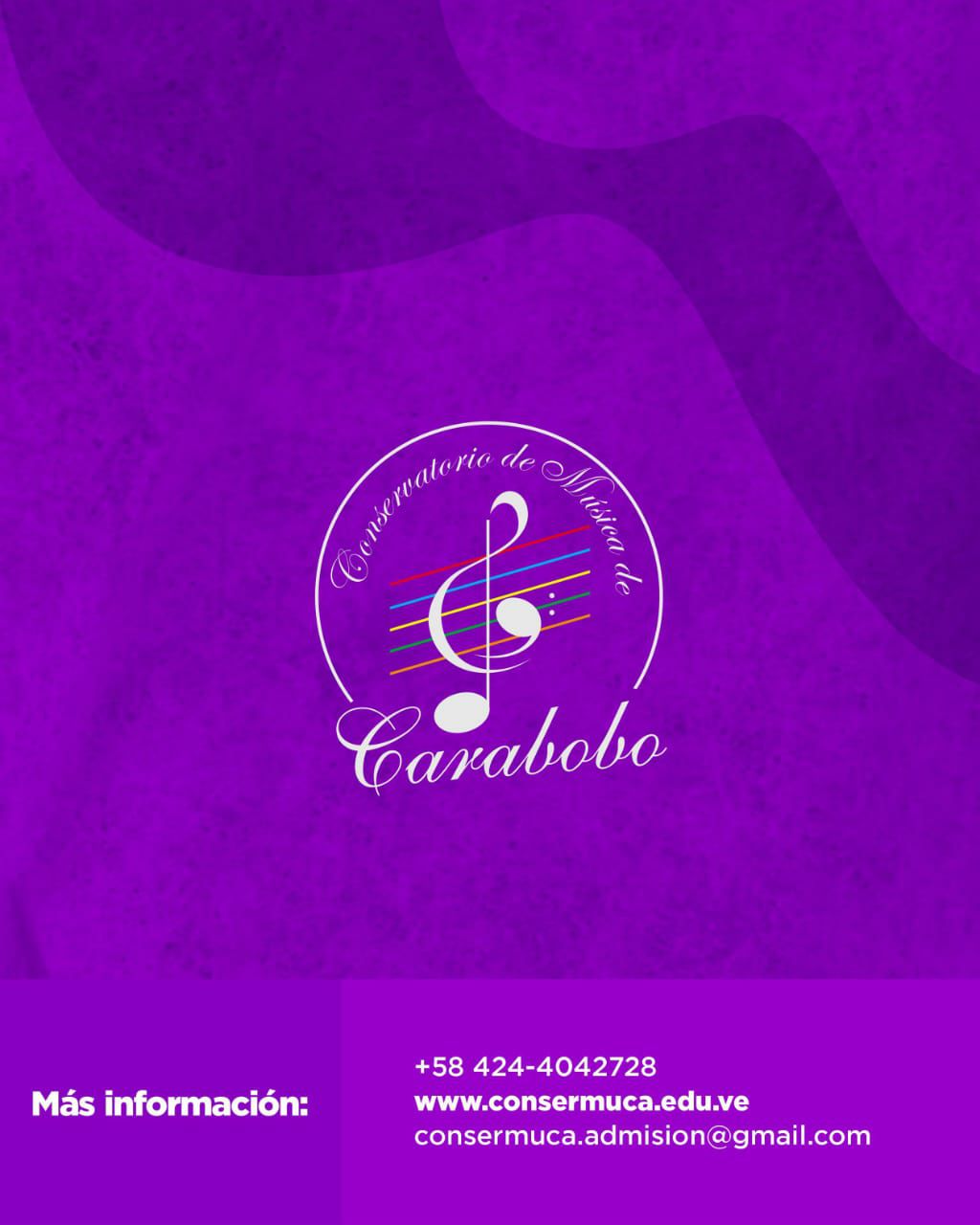 PROCESO DE ADMISIÓN. Conservatorio de Música de Carabobo. Modalidad presencial. Contactanos para más información al 0424-404.27.28. IG: @consermucacmc www.consermuca.edu.ve EMAIL: consermuca.admision@gmail.com